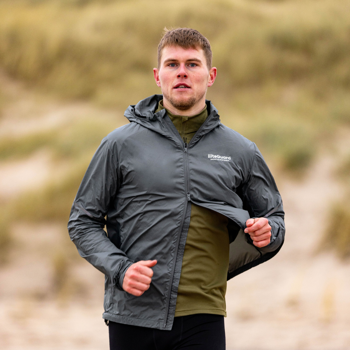 Yderlag: Beskyttelse mod vejret. En tynd vind- og vandafvisende løbejakke (AERO-TECH WINDBREAKER) er guld værd på de dage, hvor forårssolen viger for regn og blæst.
