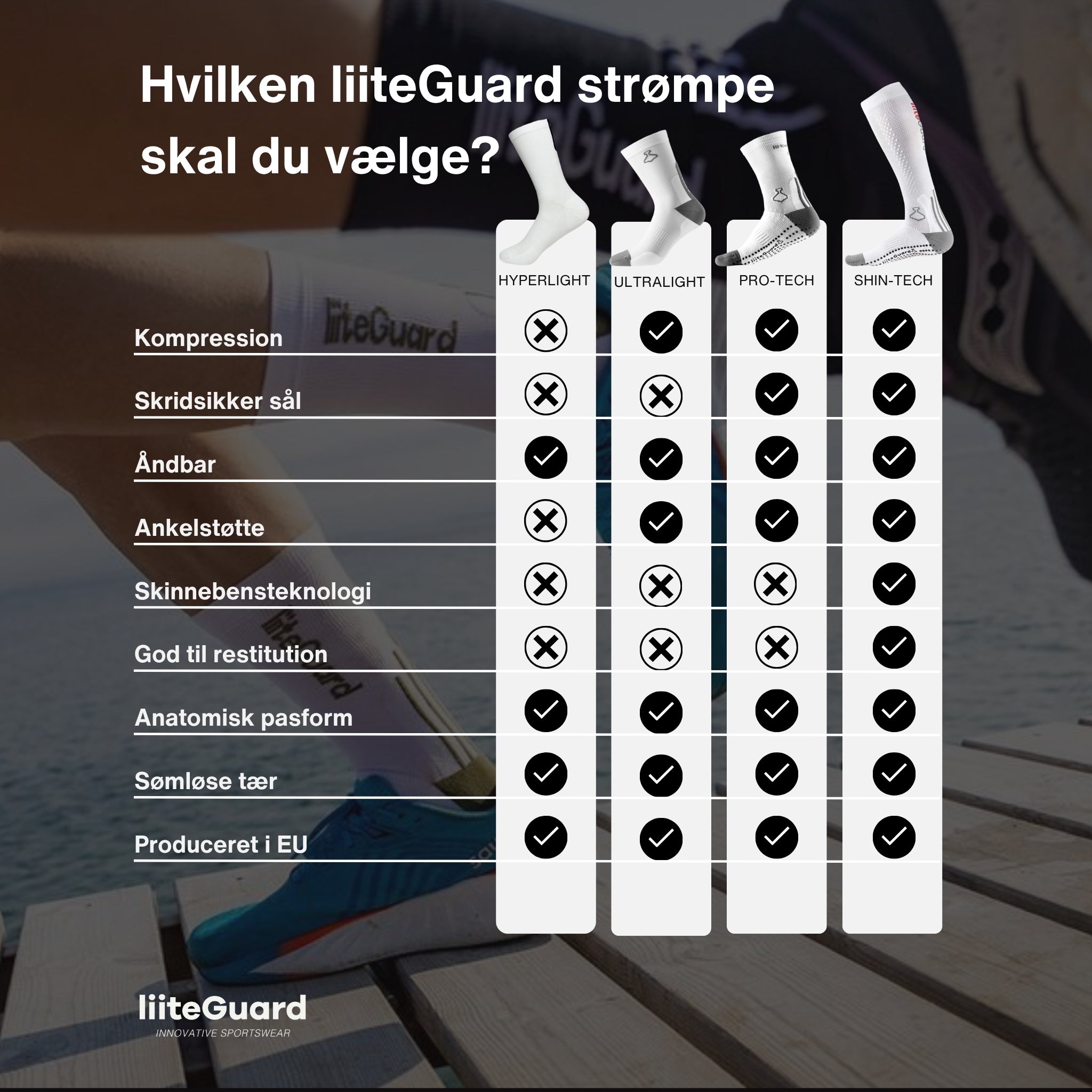 Ikke alle løbere ønsker kompression. HYPERLIGHT er designet til at sidde naturligt og komfortabelt uden at stramme. Et elastisk bånd ved svangen giver let støtte, mens det tynde materiale sikrer fuld bevægelsesfrihed.
