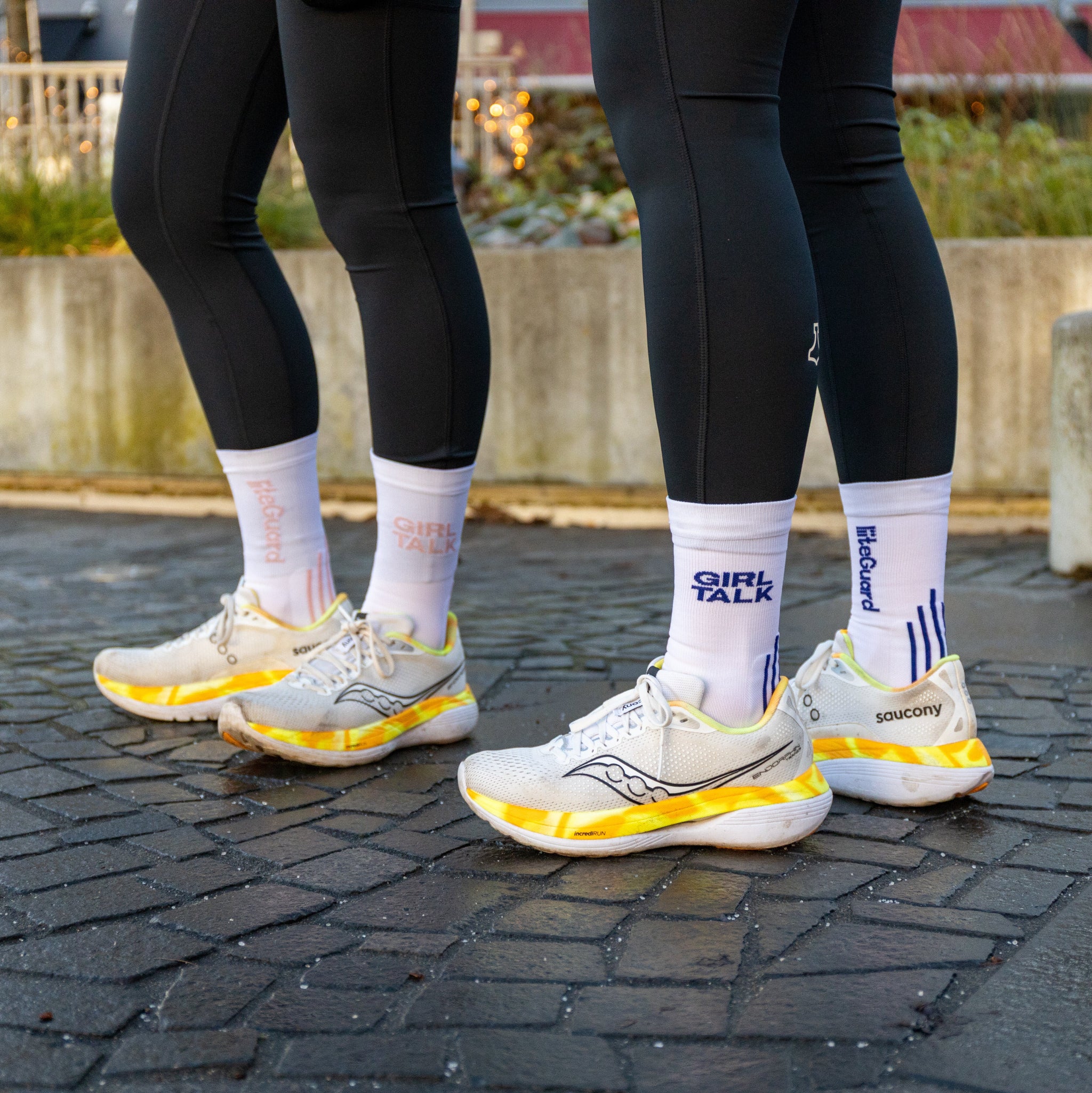 liiteGuard × GirlTalk er en limited edition udgave af den populære PRO-TECH strømpe. Den kombinerer liiteGuards tekniske performance med et stærkt formål - for hvert solgt par doneres 100 kr til GirlTalk og deres arbejde for at sikre rådgivning til piger og unge kvinder over hele landet der føler sig alene med svære tanker. Med denne strømpe kan du være med til at gøre en forskel - ét skridt ad gangen!